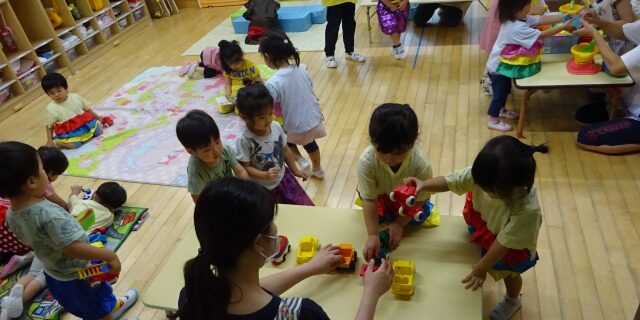 お買物ごっこ+新聞紙遊び+シール貼り+昼食