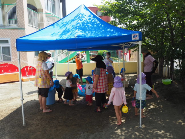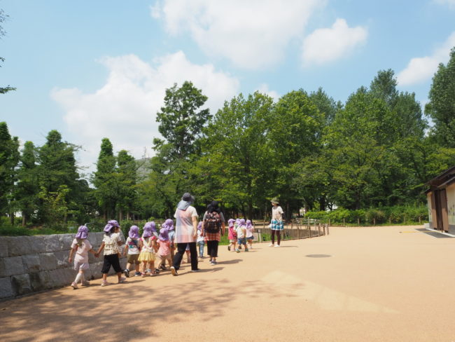 朝の会です!先生が公園に行くことを伝えると「イエーイ!」と大喜び! 約束を守って道路を渡りました! セミの抜け殻を見つけながら歩きました。 滝をくぐって広場へと出ました。 増やし鬼をみんなで楽しみました! …