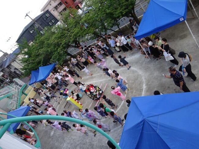 「えんにち」がはじまりました! いろんなゲームでたのしみましたよ! ぼんおどり!たくさんおどりました! さいごはみんなで「おみこし」をかつぎました! ワッショイ! たなばたメニューです!おいしかったね!